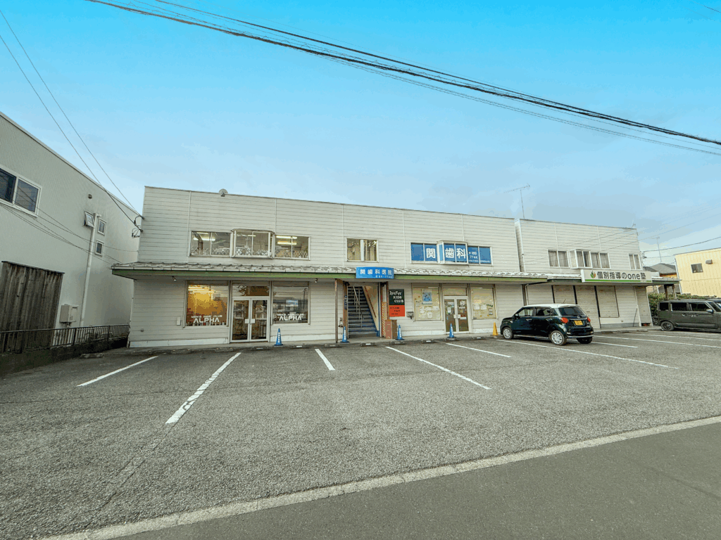 建物の1階には理容室や英会話教室などが入っています。階段を上がって2階が「関歯科医院」の入口です。