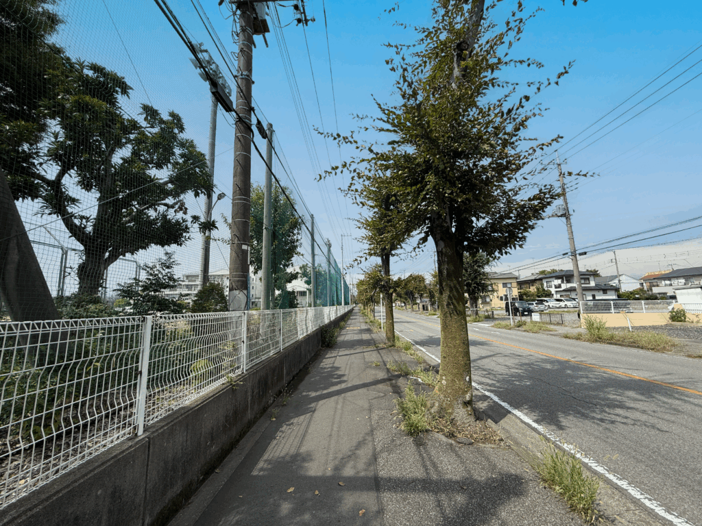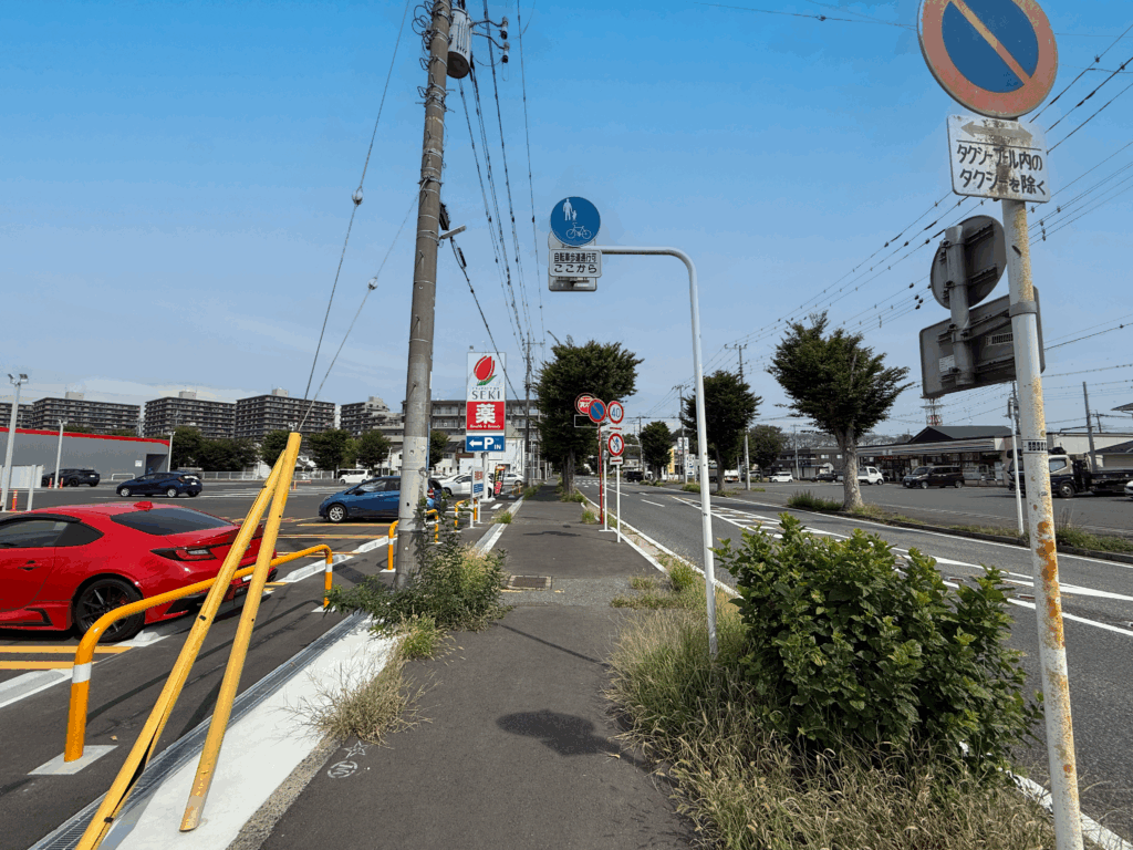駅前ロータリーにある「ドラッグストアセキ花崎店」さまの横の道をまっすぐ進みます。